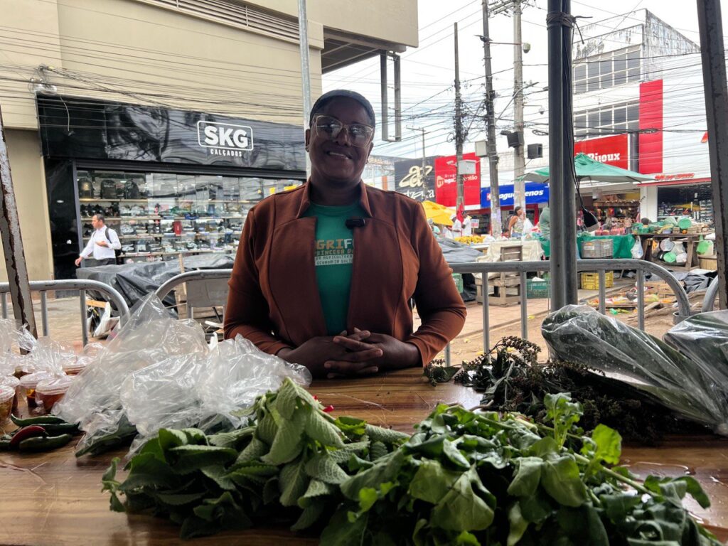 Com mais de duas décadas de experiência na agricultura, Ângela Viana levou hortaliças e plantas medicinais, como pimenta, capim-santo, erva-doce, rúcula, alface e chicória. Para ela, a Agrifeira é mais do que um espaço de vendas.