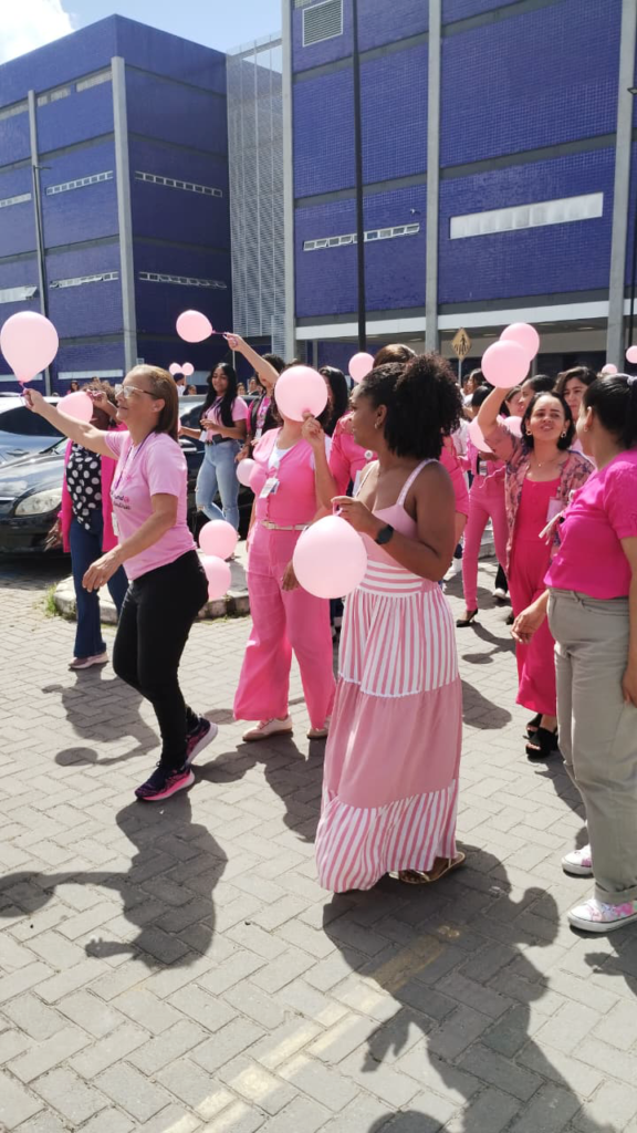 A ação teve como objetivo reforçar a importância da prevenção e do diagnóstico precoce do câncer de mama, além de promover momentos de integração e cuidado com a saúde mental dos colaboradores do hospital. Durante o percurso, servidores vestiram rosa, levaram balões e participaram com entusiasmo da atividade, que simbolizou união e compromisso com a vida.