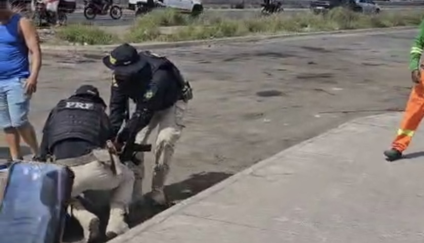 A Polícia Rodoviária Federal (PRF) foi acionada e, ao tentar abordar o condutor, os agentes relataram que ele se mostrou agressivo, sendo necessário imobilizá-lo e algemá-lo