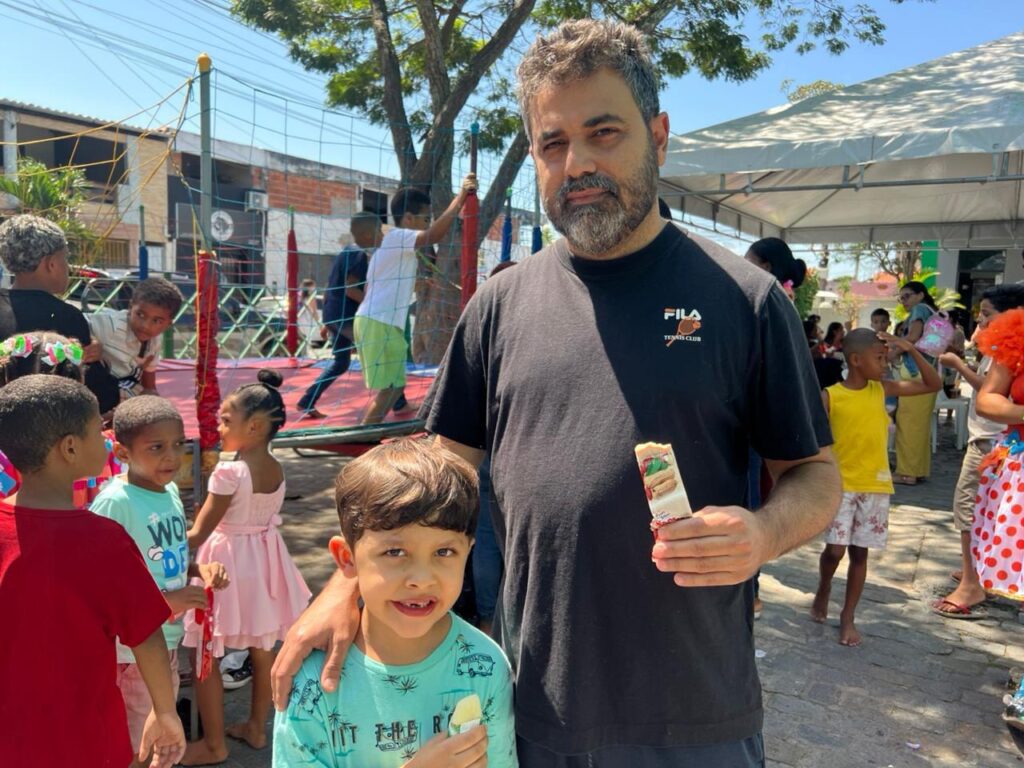Entre as famílias atendidas, o clima era de satisfação e gratidão. O vendedor Guaraci Moreira levou o filho Enzo Guilherme, de 5 anos, para aproveitar o dia.