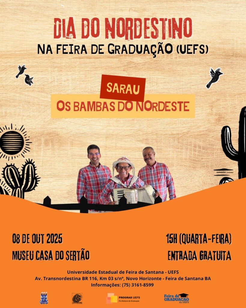 Um sarau no campus, está sendo montado especialmente para celebrar o dia 08 de outubro “Dia do Nordestino”. A data marca a importância e o reconhecimento de sua riqueza cultural, diversidade de tradições e a resiliência de seu povo. O reforço vem com a apresentação musical do grupo Os Bambas do Nordeste, trazendo histórias, curiosidades e grandes sucessos.